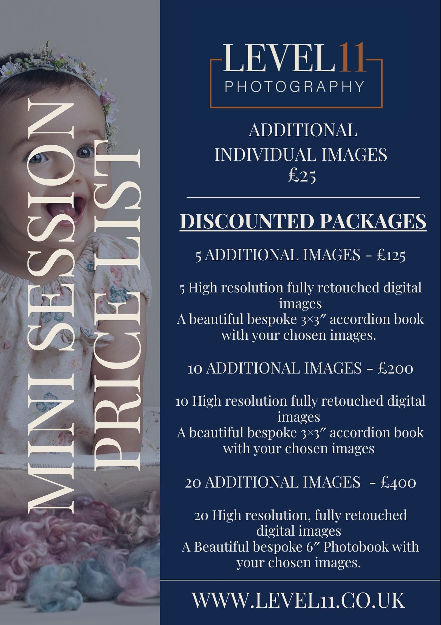 - Partners are welcome to join in for the session, should you wish to include a child under 11 we charge a surcharge of £25 to cover extra time needed.